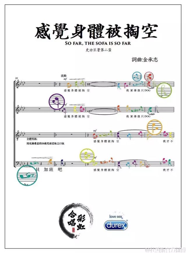 除了彩虹室內(nèi)合唱團(tuán)各大平臺(tái)的同步上線外,此次還聯(lián)合杜蕾斯和同志大叔展開(kāi)了一系列合作。 昨天上午9點(diǎn),@杜蕾斯官方微博 發(fā)布了一張海報(bào),主題就是《感覺(jué)身體被掏空》,該海報(bào)先于彩虹室內(nèi)合唱團(tuán)發(fā)布視頻就推出了,海報(bào)下方很顯著的貼出了彩虹合唱的logo,應(yīng)該是為了之后的合作做鋪墊。