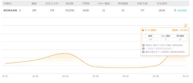 由于被大量公家號(hào)轉(zhuǎn)發(fā),《感覺(jué)身體被掏空》在騰訊視頻的播放量達(dá)到252萬(wàn)。另外,固然B站并非首發(fā)平臺(tái),但播放量也高達(dá)137萬(wàn),彈幕數(shù)達(dá)3800條,珍藏量也達(dá)到一萬(wàn)多。 通過(guò)新榜的數(shù)據(jù)產(chǎn)品“趨勢(shì)查詢(xún)”,分別輸入樞紐詞“彩虹合唱團(tuán)”和“感覺(jué)身體被掏空”可以發(fā)現(xiàn),兩個(gè)樞紐詞都在昨天達(dá)到了峰值。