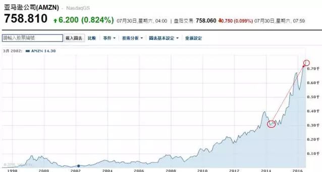 2014 年,貝佐斯被《哈佛貿(mào)易評論》選為 100 位卓越 CEO 第一名,當選理由即股東回報率驚人:在調(diào)整國別后,1996 年到 2014 年的股東回報率,依然達到了 152 倍。 而且,這還不是終點。 從 2015 年至今,短短 19 個月內(nèi),亞馬遜的市值不僅超過了沃爾瑪,還超過了伯克希爾。本周末亞馬遜市值達到 3657 億美元,比 2015 年第一個交易日的 1438 億美元高出了 2200 億美元。假如你對這個數(shù)字沒有概念,可以把它想象成是四個“百度”。