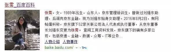 不得不說這妹子命運運限真好,2007年進入中心財經(jīng)大學(xué)信息學(xué)院,2011年畢業(yè)后以管培生的身份進入京東。隨后事業(yè)平步青云,2015年景為京東旗下津投保險公司的執(zhí)行董事。 好吧!這個89年妹子也不簡樸,在學(xué)生時代就是學(xué)霸,而且在做助理時,深受領(lǐng)導(dǎo)喜愛啊!據(jù)說這大BOSS叫他“丫頭”。這個應(yīng)該是強東大BOSS把,究竟當(dāng)時張雱是劉強東的助理