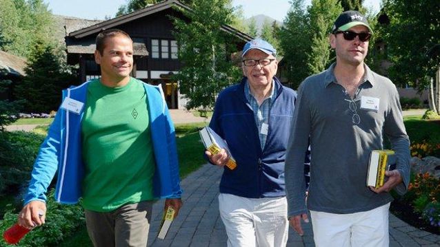 魯伯特·默多克與他的大兒子拉克倫·默多克2015年夏天在聞名勝地太陽谷(Sun Valley)。每年夏天,在傳媒業(yè)并購方面頗有建樹的投資銀行 Allen & Co會在太陽谷舉辦一次邀請制的聚會。獲邀者多為科技、媒體、投資巨頭。良多驚天媒體并購案在這里醞釀。