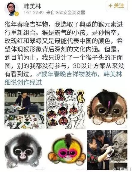 什么?這個猴子的3D制作過程巨匠竟然未介入過?不外看上面巨匠的原版畫,貌似差距是挺遠的。只是這3D的制作者將巨匠這畫作變得這么誤解,怪不得連巨匠也要進行澄清了。 而且看了看巨匠此前的畫作,這只吉利物猴子確實感覺有點來歷不明了。 來賞識一下巨匠的畫作:這才是藝術(shù)品好嗎。