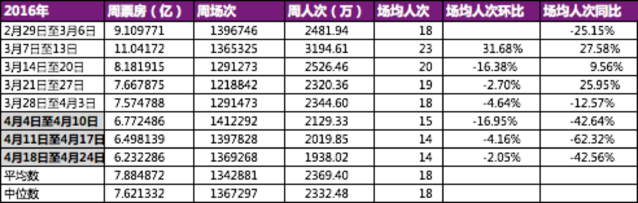 五一檔昨日(4月29日)拉開(kāi)帷幕,在迎接新一輪的市場(chǎng)熱浪前,相信絕大部門行業(yè)觀察人士和片子興趣者都已經(jīng)留意到內(nèi)地影市在過(guò)去60天里所感慨感染到的刺骨寒意。 自三月中旬以來(lái),內(nèi)地影市周票房已經(jīng)六連跌,由3月14日至3月20日的11.04億幾乎被腰斬到了4月18日至4月24日的6.23億。盡管在清明假期前(3月28日至4月3日),《蝙蝠俠大戰(zhàn)超人》和《我的特工爺爺》《火鍋英雄》的接踵上映給影院經(jīng)理們注入了一劑強(qiáng)心劑,止住了周場(chǎng)次的下滑趨勢(shì),并在隨后顯著被影院經(jīng)理拉升到了141萬(wàn)場(chǎng)(4月4日至4月10日),但觀眾反應(yīng)依然冷淡,周人次受清明三天假期影響,小幅晉升后旋即頭也不回地一路下探,與影院經(jīng)理們的夸姣愿望背道而馳。 對(duì)影院經(jīng)理們而言,令人寒心的數(shù)據(jù)遠(yuǎn)不止于此,自三月中旬后的六周時(shí)間里,不僅場(chǎng)均人次環(huán)比連續(xù)負(fù)增長(zhǎng),而且與去年同期比擬,4月4日后的連續(xù)三周,場(chǎng)均人次同比更是均以40%以上的速度下墜。