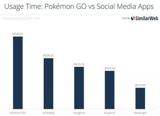 假如有人說表示不服,說:最近 Twitter 的表現(xiàn)本來就不好,那你可以看看 Pokémon GO 和其他主流社交應(yīng)用的對比。。。 Pokémon GO 與 各大社交應(yīng)用,使用時間的對比 第一條是 Pokémon GO,43分鐘