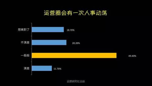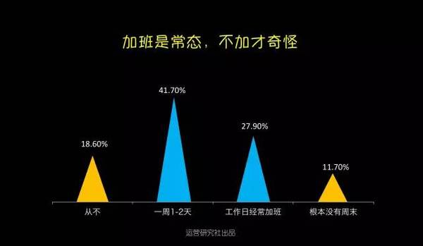 1、運營從業(yè)者的男女比例? 運營從業(yè)者的在性別占比上,15年仍是男生略勝女生,今年則是被完勝10個百分點。無論是在哪家公司做運營,都能夠顯著的感覺的陰盛陽衰。不知道大家是否跟我一樣,尋思著男同胞們都上哪工作了。 不外話說歸來,嘴上在嘀咕,作為男生心里仍是美著呢,究竟身邊美女圍著轉(zhuǎn),加班搬磚也帶勁。 2、運營從業(yè)者的春秋組成? 在16年的運營從業(yè)者中有64.2%是90后,工作十年以上的老司機偏少。項目落地靠90后,掌舵還得靠85前,真正享有運營決議計劃權的是30歲以上的運營白叟。他們在互聯(lián)網(wǎng)剛起步階段就開始在運營領域摸爬滾打,固然人數(shù)只占了6.6%卻把握了80%的運營資源。 3、運營從業(yè)者的工作方向? 運營是個框什么都能夠往里裝,每次朋友聚會被問到在做什么的時候,你是不是也會緊張,然后腦子里快速閃過最近做的事情,試圖給自己做工作下個詳細的定義,可終極仍是有49.5%的運營無法改變“實在自己什么都做”的真相。 不外從16年運營人生存現(xiàn)狀調(diào)查的結果中我看到了一個好的趨勢:運營分工開始明細。內(nèi)容和用戶運營的相關從業(yè)者比例晉升到了26%,新媒體運營的比例在下降,越來越多的企業(yè)開始意識到對產(chǎn)品本身運營的價值高過在新媒體渠道的盲目跟進。 4、運營從業(yè)者的工作年限分布? 據(jù)某著名招聘網(wǎng)站數(shù)據(jù)顯示,互聯(lián)網(wǎng)的整體從業(yè)者中工作經(jīng)驗在3年以下的為37.46%,而單從運營崗位分析,0-3歲的運營卻占到了91.5%,比擬于技術、產(chǎn)品、設計,運營作為互聯(lián)網(wǎng)的新興崗位還有很長的路要走。 另外,今年1-3歲運營的占比超過了0-1歲運營,看來仍是有蠻多人選擇在運營這條路上堅持的。 5、運營從業(yè)者的薪資收入? 運營也算是拼資歷了,薪資分布和從業(yè)年限的分布在整體上一致。受工作年限的影響,79.8%的人工資不超過10K,只有少部門運營突破經(jīng)驗限制拿到了10K以上。 今年互聯(lián)網(wǎng)行業(yè)整體均勻薪資晉升了,但是1-3年運營從業(yè)者的薪資水平反倒泛起了下降,相信不少人又該(被)拖后腿了。 6、你運營的產(chǎn)品用戶規(guī)模? 受資本寒冬的影響,今年未上線的產(chǎn)品占比從去年的27.6%下降到了17.8%,用戶規(guī)模在10萬-100萬的產(chǎn)品比例晉升了2個百分點。 對于互聯(lián)網(wǎng)創(chuàng)業(yè)來說10萬用戶規(guī)模是條坎,還有46.1%的產(chǎn)品在努力沖破這條生命線,往前推進意味著融資加速,整體運營節(jié)奏也能夠上正軌。 7、你需要加班嘛? 超過81.4%的運營需要加班,更糟糕的是有11.7%的從業(yè)者根本就沒有周末。拼一點的創(chuàng)業(yè)公司正常的作息時間是“10-10-6”,也就是每周需要工作6天,周末碰到產(chǎn)品或者流動上線基本上就是繼承加班了。 即使不在創(chuàng)業(yè)公司,有一些社區(qū)的運營,周末除了需要更新內(nèi)容和首頁物料,碰到熱門事件還得出內(nèi)容做專題,工作節(jié)奏完全遇上了戰(zhàn)地記者。對嚴苛要求自己的運營來說,糊口即工作,工作即糊口,單身只身汪恨不得把家搬公司了。18.6%表示從不加班的運營,不知道你們公司還招人嗎? 8、你在工作中最缺什么? 跟運營從業(yè)者中大部門是90后有關,65.5%的運營都是工作狂,在他們眼里個人工作成就感比什么都重要。 另外一個比較讓長輩們擔心的現(xiàn)象是:運營從業(yè)者把找另一半的優(yōu)先級放在掙錢、個人時間、旅游之后了。 9、你對現(xiàn)在的運營工作滿足嘛? 預計明年春季在運營圈會有一波大換血和動蕩,超過88.3的運營表示對現(xiàn)在的工作無感,其中18.7%明確提出想離職。 無法學到更多東西、對新增不滿足、企業(yè)發(fā)展遠景不佳,是互聯(lián)網(wǎng)運營人選擇跳槽的主要原因,各位老板們是時候在年底的時候給你想留著的人才加薪發(fā)年終獎啦。 最后是今年新增的一項關于學習的調(diào)查,主要是出于私心想看看現(xiàn)在有多少人缺乏系統(tǒng)學習的機會。讓人值得興奮是不缺學習機會的運營占比想象中高出了3個百分點,但是仍舊有超過90%的運營缺乏學習機會,比擬于零散的微課有75.5%的運營開始熱衷于花更多的時間去系統(tǒng)的學習運營。 附上五條運營對自己學習現(xiàn)狀的吐槽: 1)培訓少領導太忙沒時間指教 2)像我們這種二本不出名學校畢業(yè)的應屆生,第一年真的好難啊。但愿有針對我們的課程。 3)我剛剛轉(zhuǎn)到廣告產(chǎn)品運營,之前也不是做這塊的,有時不知道要往哪方面想,做些什么。最頭疼的是,想請教個人也沒有,由于目前整個部分只有我一個運營。之前還有一個人做這塊內(nèi)容,每次想跟他學習下,他都會說你自己想唄。 4)仍是沒人帶啊沒人帶,自己做了運營方案但又沒能很好地執(zhí)行,學的知識點都是零散的不系統(tǒng)。 5)運營工作職員很難找到一個系統(tǒng)的學習尺度,都是在不斷試探中總結經(jīng)驗,剛入行的小白感覺要學的太多,不知從何開始。 90后的李叫獸只有一個,但苦逼的運營卻有良多!我們要靜守,一起抱團渡過這段一臉蒙逼的成長。 |
