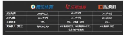 圖注:獵豹移動(dòng)數(shù)據(jù)顯示,狂風(fēng)體育躋身體育APP前10,體育直播APP第三 “輕巧”的狂風(fēng)體育揮出“效率”的重拳 前不久,馮鑫在接受媒體采訪時(shí)表示,對(duì)進(jìn)入體育工業(yè)的這半年很滿足,“我們只用了半年時(shí)間,做到現(xiàn)在這個(gè)程度,我是認(rèn)可的。我們花了比別人少的錢,用了比別人少的員工,用戶追捧程度卻比別人好,從我們自身來說,這是效率,但對(duì)社會(huì)來說這是價(jià)值。” 論效率,論投入產(chǎn)出比,馮鑫確實(shí)有驕傲的資本。首先看整體投入,目前狂風(fēng)體育不外百人規(guī)模,2億左右的投資?耧L(fēng)體育成立不足百日便拿到A輪融資,融資速度和效率非常之高。可說實(shí)話,這些錢即使在科技創(chuàng)投圈也不算多,在動(dòng)輒數(shù)十億燒錢的互聯(lián)網(wǎng)體育領(lǐng)域,更是微不足道。和樂視體育、騰訊體育、PPTV體育這些體量龐大的對(duì)手比擬,狂風(fēng)有點(diǎn)小巧玲瓏,卻有著精彩的爆發(fā)力。