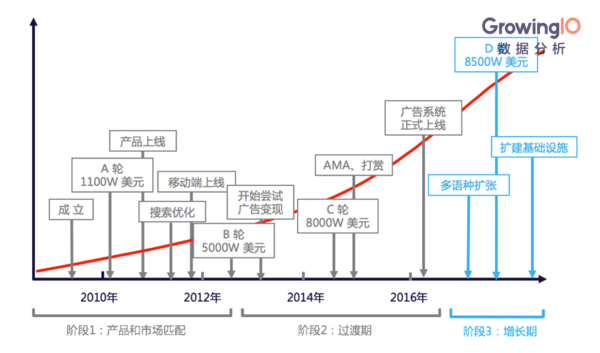 Sean Ellis,在2010年最早提出Growth Hacker的概念,他先后效勞于多家硅谷創(chuàng)業(yè)公司并協(xié)助 Dropbox 完結(jié)了年500%的添加。Sean Ellis 以為一家成功的創(chuàng)業(yè)公司必定先后閱歷三個期間:Product / Market Fit(商品和商場匹配期)、Transition to Growth(過渡期)、Growth(添加期)。 SocialCam 失利的地方就在于前期商品還沒有和商場匹配就開端大規(guī)模擴(kuò)大之路,就像房子地基沒做好就開端蓋樓,失利是必定的。 回到咱們今天的主角 Quora ,它前期的添加速度遠(yuǎn)遠(yuǎn)沒有 SocialCam 那么冷艷,可是一向穩(wěn)定添加。那么八年來,Quora 是如何一步一步走過來的呢? 二、Quora 的添加黑客之旅 正如上面的創(chuàng)業(yè)金字塔模型,Quora 的添加進(jìn)程能夠分為明顯的三個期間。 (一)商品和商場匹配期Quora 在融資方面的表現(xiàn)十分奇特,商品上線前 3個月就取得了 1100 萬美元的 A 輪融資,估值 8600萬美元。這不只得益于創(chuàng)始人自身的明星效應(yīng)(他是 Facebook 的首任CTO),更是由于 Quora 對商場的定位十分精確,他們的中心價值點(diǎn)即是高質(zhì)量的內(nèi)容。