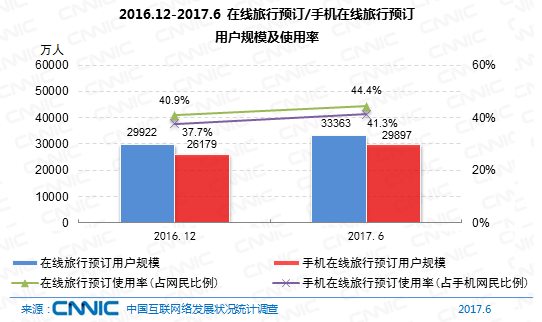 7、游覽預定網(wǎng)民規(guī)劃到達3.34億,手機端份額提高至41.3%