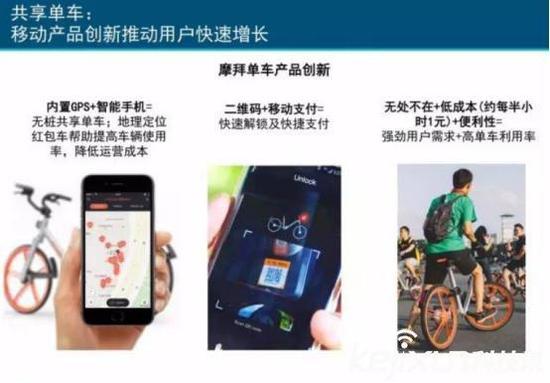 在這份2017年的互聯(lián)網(wǎng)趨勢(shì)陳述中,摩拜單車被獨(dú)自、要點(diǎn)提及。以摩拜單車為代表的同享單車,被認(rèn)為是移動(dòng)商品立異的模范。其間,摩拜單車的GPS地輿定位、掃碼解鎖和方便付出、高效利用率、無(wú)處不在的便利性效勞等立異被分別指出和論述。