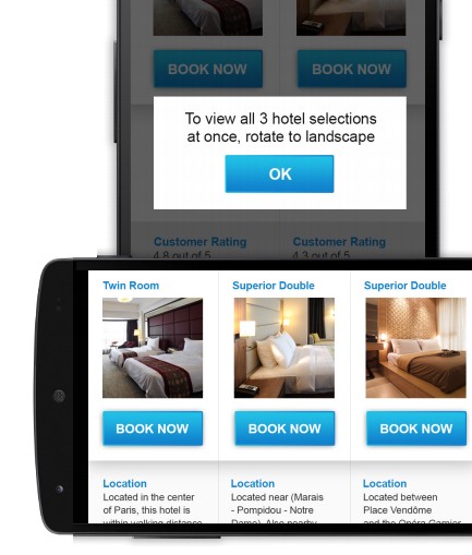 9、告知用戶選擇更公道的屏幕方向 不同的屏幕方向下,用戶的瀏覽體驗(yàn)會完全不同的。用戶慣于在統(tǒng)一屏幕方向下完玉成部的操縱,所以提醒他們切換方向可以晉升網(wǎng)站瀏覽的用戶體驗(yàn)。所以,當(dāng)你的網(wǎng)站偏向展示性,并且使用橫屏?xí)r瀏覽體驗(yàn)更佳的話,不妨使用行為召喚設(shè)計來提示用戶。