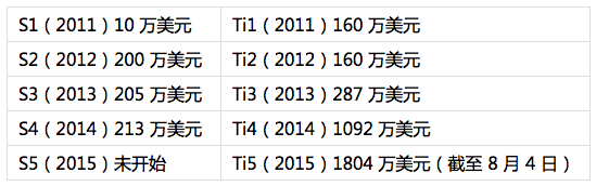留意: 本文基本不討論游戲品質(zhì),更無意比較游戲優(yōu)劣。 本文中的「比賽」和「游戲」并非統(tǒng)一概念,請(qǐng)留意區(qū)分。 本文可能從游戲本身以外的格式來看待游戲,包括但不限于產(chǎn)品及企業(yè)角度。 如標(biāo)題所言,LOL指的是近些年最火熱的MOBA游戲英雄同盟,而1800萬天然指的是另一款MOBA游戲DotA2最近如火如荼的大賽Ti5。 在問為什么之前,先看是不是讓我們往返顧下雙方一年一度最具代表性的官方大賽分別有多大的獎(jiǎng)金池。在這里,我們比較LOL的「英雄同盟全球總決賽」(League of Legends World Championships),其第n賽季簡稱Sn;以及DotA2的「Dota2國際邀請(qǐng)賽」(TheInternational,Dota2Championship),其第n屆簡稱Tin。 之所以選取這兩個(gè)賽事,有以下三個(gè)原因: 1.它們都是官方舉辦的具有代表性的世界級(jí)賽事; 2.它們都有比擬其他賽事較高的獎(jiǎng)金額度; 3.它們都是大致會(huì)按期舉行的系列賽。 以上只是常識(shí)部門,無需展開敘述。而兩大系列賽的獎(jiǎng)金比較如下: