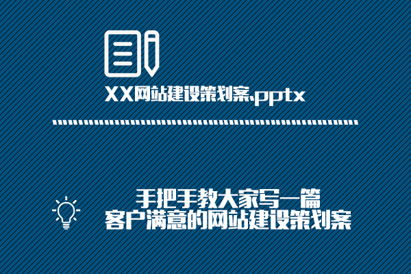 一般我們在和客戶談網(wǎng)站開發(fā)建設(shè)項(xiàng)目的時(shí)候,對方通常都會要求我們提供一份網(wǎng)站開發(fā)建設(shè)方案。固然在項(xiàng)目接洽過程中有談到某些開發(fā)建設(shè)方面的內(nèi)容,但是一份書面的方案提供仍是很有必要的。這不僅利便于客戶更加仔細(xì)地了解我們提供的服務(wù)和開發(fā)建設(shè)流程,還有利于客戶治理層之間的項(xiàng)目溝通探討,為雙方之間的項(xiàng)目確定提供指導(dǎo)性文件。常見的方案都是以PPT形式展現(xiàn)的,PPT的好處就是展現(xiàn)形式豐碩多樣,給人的感覺直觀且信息量大,易于理解。PPT方案也可采用某些動(dòng)效展示,令某些動(dòng)作交互更加通俗易懂,客戶在閱覽過后心里也更加清晰明白。假如項(xiàng)目不大,當(dāng)然也可以使用WORD來展示,不外小編仍是推薦以PPT形式來展現(xiàn),究竟顯得高端一點(diǎn)。 針對不同的項(xiàng)目需求有不同的策劃方案,我們做出來的方案一定要貼和客戶需求來編寫,時(shí)刻捉住客戶所需,才能令這篇方案體現(xiàn)應(yīng)有的價(jià)值,而不是抄襲千篇一律的模式。沒有重點(diǎn)的方案,只會令客戶感到疑惑,得不到客戶想得到的信息,那么繼承的合作也就難以開展下去。 下面讓我們來看看詳細(xì)從何著手來寫一篇優(yōu)質(zhì)的網(wǎng)站建設(shè)策劃方案。 一、預(yù)備工作 俗話說兵馬未動(dòng),糧草先行。我們在開始進(jìn)行方案策劃的時(shí)候,一定要提前做好預(yù)備工作。詳細(xì)說來就是把握客戶具體資料,包括客戶所屬行業(yè)特點(diǎn)、網(wǎng)站建設(shè)的需求、客戶對互聯(lián)網(wǎng)的認(rèn)知度等(利便方案的策劃是否要運(yùn)用專業(yè)術(shù)語仍是淺顯易懂的方式來編寫)。當(dāng)我們知曉這些內(nèi)容后,就可以思量接下來的方案編寫采取哪種形式來展現(xiàn)好。再者,也能讓我們的方案內(nèi)容策劃盡可能地貼近客戶、貼近需求。這一階段的預(yù)備工作是我們必需要做的,除此之外我們還要和公司技術(shù)等相關(guān)職員研討一下針對客戶的建站要求詳細(xì)是怎么部署的。我們策劃職員的角色就相稱于連接二者的橋梁,當(dāng)然要知曉雙方的信息,這樣策劃出來的方案才能合用于雙方。方案不只是客戶要看,我們內(nèi)部也要參閱的,這點(diǎn)大家需要留意。 這里順便談一點(diǎn),就是PPT要不要使用模板的題目,小編覺得使用模板沒什么不好,當(dāng)然假如能自己設(shè)計(jì)那是最好的。使用現(xiàn)成的PPT,保持版式的條件下修改里面的內(nèi)容,這是一種快速完成方案的方法。假如自己設(shè)計(jì),那么有更多的發(fā)展空間,良多圖片設(shè)計(jì)也能自定義化,適合擁有一定設(shè)計(jì)基礎(chǔ)的策劃者。自己完全獨(dú)立設(shè)計(jì)一篇策劃方案PPT,打從心里也是對自己的肯定和鼓勵(lì)。所以不用糾結(jié)用了別人的PPT模板,里面的內(nèi)容才是實(shí)質(zhì)性的干貨,是別人復(fù)制不到的精華。 二、策劃方案的編寫 開始編寫策劃方案之前,最好先列個(gè)提綱、打個(gè)草稿,就比如我們寫作文一樣。想好先寫什么、再寫什么,做到心中有數(shù),這樣編寫的方案也有一定的條理順序,便于閱讀理解。下面浪訊科技小編將自己平時(shí)的策劃步驟給大家分享一下,包括以下幾點(diǎn)。 1.首頁展示 策劃案的名稱,策劃案編寫者所屬公司等信息,可適當(dāng)添加。不要求信息量有多大,簡潔明了就好。如下圖,當(dāng)然配色那些可以按照客戶行業(yè)特征或以科技公司色調(diào)為主,不要太花哨就好。 2.策劃內(nèi)容 這部門展示我們針對客戶需求所進(jìn)行的大體規(guī)劃,常見的內(nèi)容包括項(xiàng)目分析、網(wǎng)站需求及定位、網(wǎng)站TOP圖、板塊詳解、響應(yīng)式網(wǎng)站特色、項(xiàng)目建設(shè)流程周期及預(yù)算、關(guān)于我們等。詳見下圖