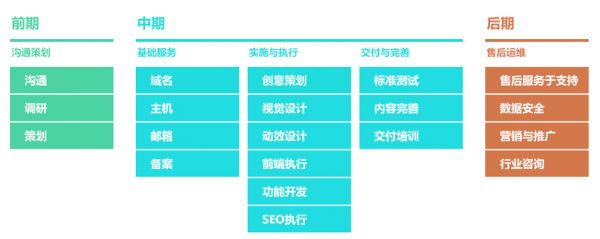 D.板塊欄目布局 針對首頁和欄目頁,我們根據(jù)客戶需求進(jìn)行簡樸樣板設(shè)計(jì),給出一個(gè)大體樣圖來給客戶看。這可認(rèn)為以后的細(xì)節(jié)調(diào)整做一些部署,究竟只有看過樣稿后客戶心里才能有所輪廓概念,這樣客戶的要求也能更好地有針對性,我們今后修改起來也更加順手利便。 E.響應(yīng)式網(wǎng)站建設(shè)方式 這個(gè)部門算作一個(gè)擴(kuò)展知識,為客戶簡述當(dāng)前流行的網(wǎng)站開發(fā)方式,一來可以令客戶了解一下行業(yè)動(dòng)態(tài),二來展現(xiàn)我們開發(fā)公司緊跟時(shí)代潮流,技術(shù)手段始終不斷提高,給客戶帶來一個(gè)好的印象。 F.項(xiàng)目建設(shè)流程周期及預(yù)算 這部門為網(wǎng)站建設(shè)流程步驟,可以通用,具體信息見下圖所示。