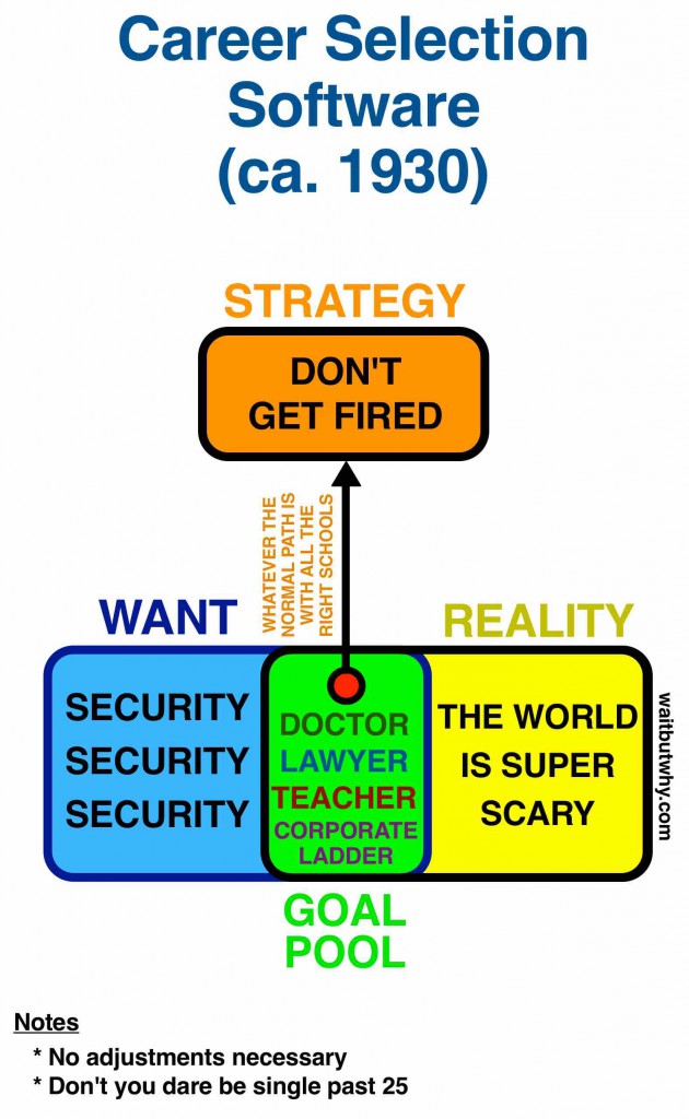 平心而論,父母的糊口通常很糟糕。他不得不做所有糟糕透頂?shù)氖虑椋俗钪匾氖虑?mdash;—還有一群需要照顧的自戀又麻煩的小家伙,他們覺得父母就是負(fù)責(zé)伺候他們的。忙了一整天,心情郁悶,還有一大堆事情要做,再和孩子們玩為什么的游戲,簡直是一場惡夢。 但是,它卻是一個值得忍受的惡夢。給孩子一道命令、一條訓(xùn)誡或一句至理名言,卻不給他們?nèi)魏味床爝壿嫽A(chǔ)的解釋,就只是在授之以魚,而非授之以漁。假如我們按照這樣的方式成長,等把魚全部吃完后,就會發(fā)現(xiàn)自己既沒有魚竿也不會釣魚,由于我們只學(xué)習(xí)了如何使用安裝好的軟件,卻沒有能力為自己編寫代碼。 學(xué)校會使事情變得更糟。我最喜歡的一個思惟家、作家Seth Godin(他的博客布滿了第一原理的聰明),曾在一期TED節(jié)目里談?wù)搶W(xué)校教育。他說,現(xiàn)行的教育體系體例是產(chǎn)業(yè)化時代的產(chǎn)物,那個時代正視出產(chǎn)力的爆發(fā)和糊口水平的進步。但跟著工廠越來越多,也就需要更多的工人,所以,我們的教育系統(tǒng)圍繞這一目標(biāo)進行了重新規(guī)劃。他解釋說: 其結(jié)果是:普遍的公共教育僅有的目的,就是培養(yǎng)愿意在工廠里工作的人們,而不是培養(yǎng)明天的學(xué)者(由于我們已經(jīng)有良多學(xué)者)。練習(xí)人們循分守紀(jì),適應(yīng)產(chǎn)業(yè)出產(chǎn)!肝覀兓ㄙM整年的時間對你進行塑造。假如你出缺陷,我們還會把你召歸來,然后繼承加工。像所有的工廠一樣,我們把你鋪排在某個位置。我們建立了一個系統(tǒng),這個系統(tǒng)中的所有的人都可以被替代,由于工廠就是以可互換部件為基礎(chǔ)的。」 無獨占偶,另一位我喜歡的作者James Clear,最近也在自己的博客上對此進行了解釋: 20世紀(jì)60年代, 創(chuàng)造力行為研究學(xué)者George Land對1600名五歲的孩子進行了一項測試,其中98%的孩童極富創(chuàng)造力。之后每隔五年,Dr.Land都會對每個孩子進行重新測試。當(dāng)這批孩子長到十歲時,只有30%極富創(chuàng)造力。這個數(shù)據(jù)在他們15歲的時候下降至12%,在他們25歲時下降至2%。當(dāng)這些人進入成人階段,便不再有創(chuàng)造力了。用Dr.Land的話來說,非創(chuàng)造力的行為已經(jīng)潛移默化。 這也不難理解。創(chuàng)造力思維本來就和第一原則推理同宗,它們都需要思索者培養(yǎng)出自己的思維方式。人們總說創(chuàng)造性思維是一種天賦,但實在遠(yuǎn)沒有這么簡樸:這猶如在白紙上作畫,需要我們的大腦不斷訓(xùn)練,產(chǎn)生新想法主意,但是學(xué)校的教育觀念卻恰恰相反,好比聽從領(lǐng)導(dǎo)、向隊列看齊、變成考試機器。相較于在白紙上作畫,學(xué)校更像是在給孩子們一本填色書,告訴他們不能涂到線框以外。 而終極結(jié)果便是在我們大腦可塑性最強的時候,家長、老師和社會把我們這團粘土球塞進了模具里,然后塑造成了預(yù)設(shè)的外形。 等我們長大一些,因為在早期并沒有學(xué)會如何產(chǎn)生自我的思維方式和獨立看待題目的能力,我們便習(xí)慣性地依靠已經(jīng)預(yù)設(shè)好的模式,那些來自父母老師的、有可能早在30年前就產(chǎn)生的舊思維。 30年也許還算是好的了,不信你仔細(xì)想想。 假設(shè)你有一個含辛茹苦的母親,一直用她固有的價值觀把你培養(yǎng)長大,她的價值觀,她所恐驚的和希冀的東西都會影響你。當(dāng)你面臨為什么的時候,也許你會說,由于我媽媽說這是最好的鋪排,由于外面的世界太未知,由于某某某是權(quán)勢巨子,由于我媽媽就是這么說的。 也許今后你面臨人生任何題目你都能用「由于我媽媽就是這么說的」往返答。假如你在工作中習(xí)慣于發(fā)問,那也許你多問幾個為什么就能找到原因;但很可能你更多的是捶胸頓足解釋說由于你媽媽就是這么告訴你的。 但為什么你媽媽這樣說呢? 媽媽這樣說可能是由于她的媽媽這樣告訴她的,一個1932年出生在波蘭成長的人,她的觀念可能是從她的爸爸那里得到的,這個克拉科夫的牧師,有可能是受了他祖父的影響。這個目睹了1866年西伯利亞起義的白叟,可能給予他兒孫最重要的人生經(jīng)驗就是不要和鐵匠為伍。 因為長期從事電話工作,你的母親可能看不起那些整天接電話的辦公室文職工作,而你會以為最好的職業(yè)歸宿是出版業(yè)。但假如有人刨根問底,你到底為什么要這樣選擇,可能你自己也會疑惑。你不確定的原因是由于最深層的促使你產(chǎn)生這些想法主意的基石,來自于這些不同年代和糊口背景的他人的價值觀,而不是你自己的。 一個很常見的例子就是良多我熟悉的人,他們從小被受到過大蕭條時期影響的人養(yǎng)大。假如你所有的職場規(guī)劃都遵從于1920年代出生的人的建議,那接下來你得到的謎底可能就會遵循以下的模式: