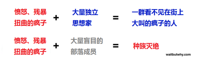 教條,不同于第一原則推理,它并不是根據(jù)信奉者自身和周遭環(huán)境而設(shè)計的,也不會根據(jù)事物的發(fā)展而改變調(diào)整。它不是可以編譯的軟件,而是已經(jīng)寫好的規(guī)則教科書。它可能是特定時間特定地點,一些特定的人根據(jù)特定情況歸納出來的,來自良久之前或者很遙遠(yuǎn)的地方,又或者根本沒用任何原因可循。但這也無關(guān)緊要,由于毋庸置疑,你不會刨根問底,你只會接受它,擁護它并靠它指導(dǎo)糊口。 你可能也不喜歡按照別人的教條糊口,但是,你沒有太多的選擇。當(dāng)童年時的疑問得到的回答卻是 「由于我就是這么說的」的時候,你開始得到這樣的暗示「我自己的歸因能力烏煙瘴氣,假如不想搞砸自己的人生,就乖乖服從前人的經(jīng)驗,別去努力了。」成長的過程中,你開始對自己的思辨能力沒決心信念。當(dāng)你不再嘗試靠自己的思維去理解事物的因果,你便失去了揭開表面探尋自我價值的機會,也無法在痛苦的實踐過程之后學(xué)會自我調(diào)整。你沒有了自己的推理,你充其量只是一個推理興趣者。 只有強盛的分析推理能力才能規(guī)劃出一條不同凡響的人生之路,假如沒有它們,教條很快就讓你和其他人的人生一樣。教條并不了解也不關(guān)心你,有時候甚至完全誤導(dǎo)你。這會讓一個本來能成為快樂畫家的人成為了律師,反之亦然。 但是,假如不知道如何推理,你就不知道如何進化或者適應(yīng)。假如伴隨你成長起來的教條并不適合你,你可以拒絕它,但是,作為一個業(yè)余推理選手,獨立走過一段路后,終極你會跳上其他人的船,遵循其他模式。你不知道怎么編寫你自己人生的代碼,所以你只好安裝其他人的程序。 人們不會有意識地去做這樣的事情,通常,假如拒絕某類教條,實在就是想要擺脫教條思維下的糊口,勇敢獨立思索。但是,教條思維是種很難打破的習(xí)性,特別當(dāng)它是你獨一知道的思維方式的時候。 我有一個朋友剛有了孩子,她告訴我說,她比她父母的觀念更為開放,由于她父母要求她有一份固定的事業(yè),但她答應(yīng)自己的孩子做任何事。過了一會兒,她解釋道,「當(dāng)然,我的意思是,假如她說她要在蒙塔納的農(nóng)場渡過一生,我會覺得還好,這點我爸媽是絕對不答應(yīng)的。但是,假如她說她會在一個對沖基金公司做事,我會殺了她!顾庾R到她并沒有從教條思維中解放出來,相較她的父母,她只是換了一個教條的外殼罷了。 這就是教條的陷阱,很難逃脫。特別是當(dāng)教條碰到一個強有力的聯(lián)盟——集團時,威力更為明顯。 部落我以為一些東西是很守舊的,或者長短常不嚴(yán)謹(jǐn)?shù)。一些人以不變?yīng)萬變,對此我很懷疑。每一件事都用相同的方法解決,對我來說毫無意義。—Louis C.K. 最教條的想法主意可以用Seth Godin的名言概括:想成為我們這樣人,就做一樣的事。 這是部落文化( tribalism)的口號。 還有個重要的區(qū)別,部落文化老是具有消極含義,但部落概念本身并不消極。一個部落僅僅是一群有共同點的人集合起來,同樣的信奉、種、國籍、家族、人生觀、目標(biāo)等;浇毯兔绹裰鼽h都是部落。 澳大利亞人是一個部落。Radiohead迷是一個部落。阿森納迷是一個部落。紐約音樂戲院景是一個部落。天普大學(xué)是一個部落。大而疏松的部落包含很多小而緊密的次級部落。你的大家庭是一個部落,而直系支屬是一個次級部落。美國人是一個部落,德州是一個次級部落,對于阿馬里洛的福音教徒來說,德克薩斯州是更次級的部落。 部落文化的好壞取決于部落成員以及他們之間的關(guān)系。一個特別簡樸的區(qū)別: 當(dāng)部落和部落成員各自擁有獨立身份,只是碰勁有交集時,這樣的部落文化就是好事。部落成員選擇成為其中一員,由于部落正好和自己很搭。假如部落或者部落成員不再適合彼此,成員就會離開這個部落。我們將此稱為「自覺的部落文化( conscious tribalism)」。 當(dāng)部落和部落成員身份統(tǒng)一時,這樣的部落文化就是壞事。這種情況下,部落成員身份取決于部落教條。部落改變了,部落成員身份也隨之改變。成員身份的改變無法獨立于部落,由于他們沒有獨立身份。我們將此稱為「盲目的部落文化(blind tribalism)」。 自覺的部落文化以為,部落成員及其身份是首位的。成員身份是帶頭老大,他是誰決定了他加入哪個部落。但是盲目的部落主義以為,部落第一。部落是老大,它決定你是誰。 這不長短黑即白——是一個光譜,一個范圍—— 但是,長大后沒有強有力的推理能力的人會缺乏強盛的自我認(rèn)同,在各種事情上,易委身于盲目部落主義,特別是他們出身時接觸到的各種部落教條。這也是愛因斯坦下面這句話的意思,「很少有人能掙脫自己所處社會環(huán)境偏見的影響,平靜表達(dá)不同的觀點,大多數(shù)人甚至都無法形成這樣的觀點! 一個大的部落,好比信奉、民族或者政治集團,會包適整個光譜范圍中的各種成員,從盲目到具有自覺意識。但是,一些部落本身會成為吸引特定成員的部落類型。邏輯上,一個部落越嚴(yán)格、越教條,就越可能吸引到那些喜好盲從的人。ISIS擁有的盲從成員的比例會遠(yuǎn)高于倫敦哲學(xué)俱樂部。 教條部落的誘惑也在情理之中——它們吸引著人道的核心部門。 人類渴想聯(lián)系和友情,核心教條能