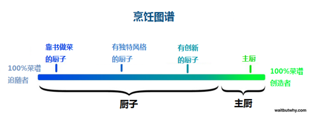 影響上的不同更為顯著。就廚子而言,即使更具創(chuàng)造力的廚子,對世界的影響也是有限的,除非非常走運。大廚并不保證都是做好事,但是,只要有點天賦并持之以恒,他們幾乎肯定會做出轟動世界的事情。有時,大廚就是一個敢于追求偉大目標(biāo)的人——但是,其他時候,大廚并不想造成轟動,他擁有強盛個性,敢于走出游戲。成為大廚,并不是說要變得像馬斯克一樣,而是說,成為你自己。 沒人討論過「推理工業(yè)(reasoning industry)」,但是,我們都涉足了這個工業(yè)。大廚和廚子題目,和其他工業(yè)沒什么兩樣。每個人做決議計劃的時候,也是在從事推理工業(yè)。 你當(dāng)下的糊口,有著方方面面還很復(fù)雜,就像一張推理工業(yè)專輯。題目在于,專輯收錄的歌曲從何而來?如何作曲?誰做的曲?創(chuàng)作一首新歌的樞紐時刻,你是如何創(chuàng)作的?你深入自己內(nèi)心了嗎?是否將現(xiàn)有歌曲的鼓點和和弦作為開始,并在前面加上自己創(chuàng)作的旋律? 我知道你想要的謎底是什么。很直接——最好是個大廚。但是,這與糊口中其他需要分辨的情況——好比勤奮工作vs.懶惰、道德vs.不老實、考慮殷勤vs.自私——不同,當(dāng)需要分辨廚子/大廚時,我們甚至都沒留意到這一需要。 恍惚界限在餐飲業(yè),廚子到大廚的過程并不是突變的,而是一個譜系上的連續(xù)變化。真實世界的廚子到大廚過程也同樣如斯: