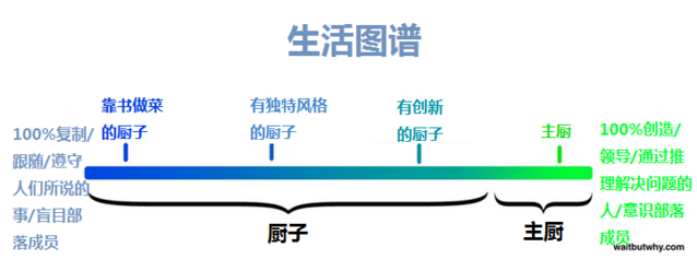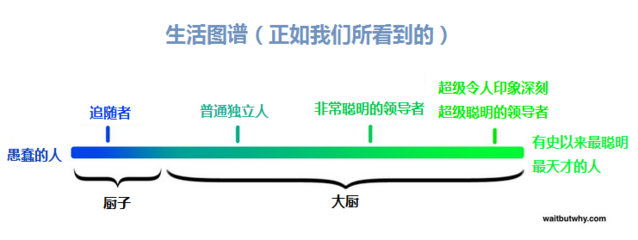 但我很肯定,大多數(shù)人看見這張光譜圖時,他們以為自己在其中的位置遠(yuǎn)比實際位置靠右。通常,我們比自己以為的更像廚子——只不外從自身的立足點看不見這個真相。 好比說: 從定義上說,廚子是追隨者。他們之所以是廚子,恰是由于不管他們做什么事,都在追跟著某種菜譜。但是,我們中的絕大多數(shù)人并不以為自己是追隨者。 我們以為,追隨者是沒有自己思惟的怯夫。我們老是想著自己的領(lǐng)導(dǎo)地位、工作積極性,并且,我們不可能讓朋友們對我頤指氣使。我們把這些當(dāng)做自己不是追隨者的證據(jù),從而證實自己不僅僅只是一個廚子。 但題目是——以上這些事情只能證實,你在你的群體中不是追隨者。正如愛因斯坦所說: 要成為一個羊群的完美成員,你首先要成為一只羊。 也就是說,你在自己的世界或社會階層中或許被看做一個明星或領(lǐng)導(dǎo)者,但是,如果你當(dāng)初以此為目標(biāo)的首要原因恰是由于你的群體菜譜告訴你,這是一件重要的事,它能讓群體的其他成員為你折服和仰望你,那么,你就不是一個領(lǐng)導(dǎo)者——你只是一個超級成功的追隨者。再如愛因斯坦所說,你和那些折服于你的人一樣,都未闊別廚子。 為了獲得真相,你必需把鏡頭拉遠(yuǎn),直到你能看到廚子的領(lǐng)導(dǎo)者——菜譜。 然而,當(dāng)我們面臨自己的糊口時,我們并不善于縱觀全局。反而是糾結(jié)于細(xì)節(jié),那看似唯一無二的獨立自我可能只是一個視錯覺。有時你感覺自己在獨立推理,但當(dāng)把鏡頭拉遠(yuǎn)時,你才會發(fā)現(xiàn),原來你只是在別人定好步驟的棋盤上玩「連連看」。你感覺自己是個有原則的人,但實際上那只是你所在的群體的普遍原則。你覺得自己很有主見,但或許那只是父母、媒體、朋友、宗教或名人灌注貫注給我們的觀點。你感覺你自己選擇了自己的人生道路,但實際上只是一條提前設(shè)好的、并經(jīng)由了群體一致同意的黃磚路。你覺得你在《秘密花園》里施展創(chuàng)造力——但請留意,顏色不要涂到線條外面。 因為這些視錯覺的存在,我們看不見自己思索中的缺陷,也無法辨認(rèn)出真正的思惟家,即便他泛起在我們眼前。相反,當(dāng)一個在科學(xué)思維和獨立思索上技壓群雄的大廚(如馬斯克、喬布斯或愛因斯坦)泛起時,我們把他們的成功歸因于什么呢? 他們的硬件真他媽的了不起。