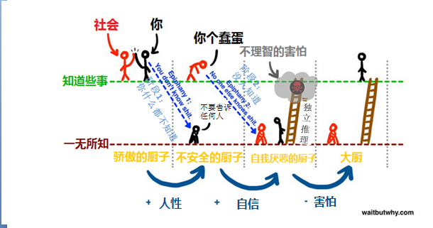 大廚和廚子一樣憎惡風(fēng)險——假如一個大廚在一場危險的戰(zhàn)爭中終極鋃鐺入獄淪為囚徒,或者引發(fā)極嚴(yán)峻的財務(wù)危機,他就不是個大廚,只是個活在「我,不可擊敗」教條下的廚子。當(dāng)大廚們展現(xiàn)出貌似不可思議的勇氣時,他們通常處在大廚實驗室階段。大廚實驗室,恰是通往很多人夢想之地的地方——職業(yè)、愛情和冒險之夢。但是,即使實驗室的門老是敞開著,絕大多數(shù)人也不會踏入一步,原因和良多美國人從不造訪世上最有趣國家的原因一樣——由于他們錯誤地以為,那些目的地是危險的。當(dāng)談到什么構(gòu)成了危險時,他們通過類比推理得犯錯誤的結(jié)論,自我否定廚子們正錯失所有的樂趣。 誤區(qū)2:錯誤的定位自我否定的廚子們的第二大題目,像良多廚子一樣,他們不知道自己是實驗室里的科學(xué)家,而不是實驗本身。 就像之條件到的,自覺部落成員能夠得出結(jié)論,而盲目部落成員本身就是結(jié)論。你所信奉的、代表的、你天天做的事情,都是你自己的研究結(jié)果。 就社會而言,當(dāng)你嘗試某事——價值、潮流、宗教、職業(yè)等方面——實在已經(jīng)是在給自己貼標(biāo)簽了。人們喜歡簡化人,以便搞清晰他們在想什么,因此,通過將你放到一個貼著清晰標(biāo)簽、過度簡化的盒子里,部落進一步強化了你的標(biāo)簽。 上述內(nèi)容無異于是在說,改變是件非常痛苦的事。對于那些面臨身份轉(zhuǎn)換的人來講,這點尤甚。部落的其他人也不會讓改變簡樸些。盲目的部落成員不喜歡其他成員發(fā)生變化——這會讓他們感到疑惑,迫使他們重新調(diào)整腦海中的信息,這會威脅到部落的簡樸性。因此,嘗試進化會常常遭到反對,冷笑或怒火。 身處痛苦蛻變中時,你會依戀當(dāng)下身份和正在做的事情——如斯依戀以至于恍惚了科學(xué)家和實驗本身的區(qū)別,健忘這是兩件完全不同的事情。 我們討論過為什么科學(xué)家歡迎關(guān)于實驗的負(fù)面反饋,但假如你是實驗本身,那么,負(fù)面評價對于你來說并不是一則有益的新聞——而是攻擊。你感到受傷,由于改變對你來講是不可能的,那些負(fù)面的評價沒什么好處。我們還討論過,為什么科學(xué)家期待他們的實驗以失敗告終,但是,假如你和你的實驗是一個整體,是一回事,那么,這不但為身份轉(zhuǎn)換設(shè)定了新目標(biāo),還會將你的身份置于險境,假如實驗失敗,你也失敗了。毀滅,永遠(yuǎn)地。 我跟馬斯克談到過美國,討論過建國之父們?nèi)绾卫玫谝辉磉M行推理。他以為,他們可以這樣推理的原因在于擺在面前的是一塊等待加工的嶄新白板。那個時代的歐洲國家很難有機會做這樣的嘗試,由于,正如馬斯克告訴我的,「(他們)困于自己的歷史。」 我聽說,馬斯克用類似的比喻描述過當(dāng)今的汽車企業(yè)和航空航天公司,他以為特斯拉的SpaceX如18世紀(jì)末的美國,全新實驗室如雨后春筍蓬勃興起。但當(dāng)他面臨行業(yè)內(nèi)的其它公司時,他以為,在執(zhí)行策略過程中,他們無法保持空杯心態(tài)。談到航空航天產(chǎn)業(yè),馬斯克表示:「他們對承擔(dān)風(fēng)險持有大量的偏見,每個人只試圖鞏固自身最大權(quán)益! 在歷史中輪回往復(fù)意味著你不知道如何改變,你已經(jīng)健忘了如何革新,世界為你打上標(biāo)簽,你深陷其中無法自拔,終極,你會成為我們提及的那些只選擇在最佳恬靜區(qū)嘗試成功概率較大的癌癥實驗的研究員們。 這也是喬布斯以為1986年被蘋果驅(qū)逐是塞翁失馬的原因。他曾表示:「從蘋果公司被炒是這一生最棒的事情,一個成功者的負(fù)重感被一個創(chuàng)業(yè)者的輕松感所替換,這件事讓我倍感自由,從此邁入了生命中最具創(chuàng)造力的階段!贡怀吹舻膯滩妓棺杂蓴[脫了歷史的鐐銬。 所以,自我厭惡的廚子捫心自問的是:「我陷入了歷史經(jīng)驗的困局嗎?」一如他站在懸崖邊預(yù)備高飛,卻發(fā)現(xiàn)已無力展翅。從進化為人、開始改變,直至大膽勇敢嘗試非同平常的事情,什么阻礙了自身發(fā)展?是自我綁架的身份嗎? 自我厭惡廚子對恐驚的信念,和缺乏自信的廚子以為傳統(tǒng)聰明能解答一切題目一樣,都不是真的 (幻覺而已——譯者)。你可以四處觀察到支持「其他人也不知道」這一啟示的證據(jù),但是,「既不失敗也不變化,實在很要命」這一啟示, 只能親自體驗并加以觀察。只有在克服自身恐驚后,你才能體會這一點…假如你經(jīng)歷過改變失敗,并意識到?jīng)]發(fā)生什么壞的事情,你才能體會這一點。又是一個兩難困境。 這就是我相信如斯多的能人會陷入自我厭惡廚子式的糊口的原因,由于這個啟示缺乏應(yīng)許之地(promised land)。 踐行最后一條啟示所面對的挫折是,要找出不把自身恐驚當(dāng)回事兒的辦法。把恐驚當(dāng)回事兒是人類的生理反應(yīng),削弱它的獨一辦法就是,當(dāng)沒有什么壞事發(fā)生時,直視并輕蔑它,你所感到的大多數(shù)恐驚不外是煙霧,是步履的反射物。走出恬靜區(qū)并做好它,是一次難以置信的強盛體驗,這種體驗帶給你的改變是:一旦你擁有類似的體驗,它會消除你頭腦中根深蒂固又毫無理性根據(jù)的恐驚。 由于大廚知道而廚子不了解的最重要事情就是,真實糊口和《俠盜獵車手》并無實質(zhì)區(qū)別,《俠盜列車手》