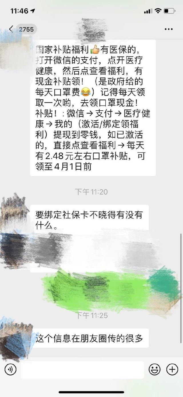 微信錢包能收取“國家口罩補(bǔ)助”?你信了嗎?不要信,這是流言!近日,不少微信群呈現(xiàn)“國家口罩補(bǔ)助”的相關(guān)信息。21日,記者采訪相關(guān)部分了解到,