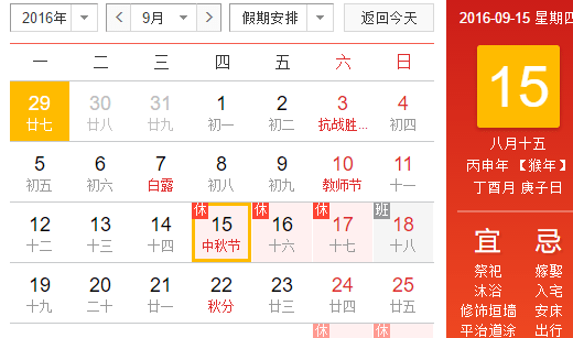 各位尊敬的用戶: 根據(jù)《國務院辦公廳關(guān)于2016年部分節(jié)假日安排的通知》中的相關(guān)規(guī)定,結(jié)合我公司實際情況,現(xiàn)將我公司2016年中秋節(jié)放假