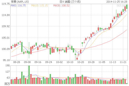 作為世界上股票市值最高的公司,蘋果的市值今天突破了7000億美元,再創(chuàng)歷史新高。蘋果估價在周二美股開盤后上升0 8%至119 59美元,市值7010