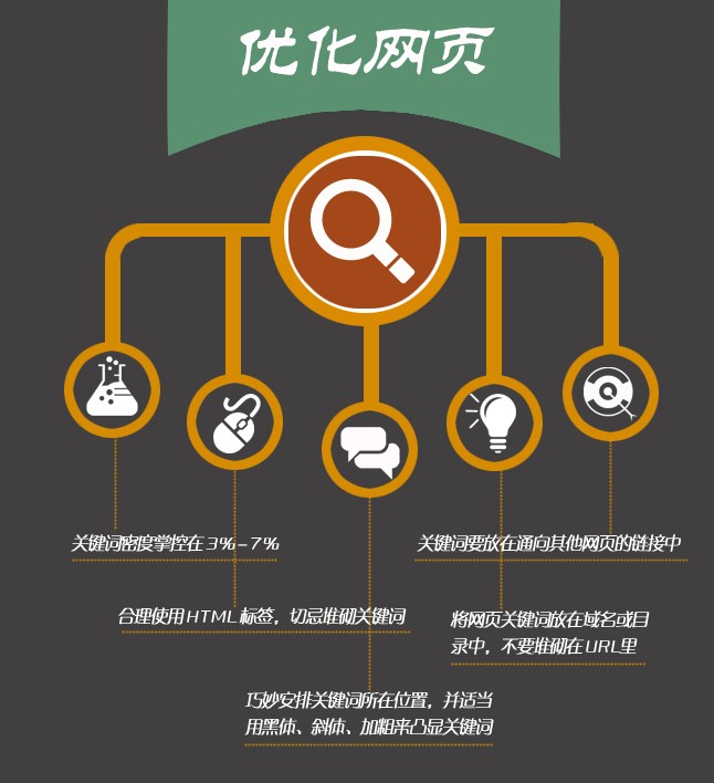 關鍵詞位置、密度、處理 URL中呈現(xiàn)關鍵詞(英文) 網(wǎng)頁標題中呈現(xiàn)關鍵詞(1-3個)