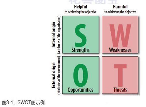 3.12 規(guī)劃和評價的高檔辦法 事務(wù)規(guī)劃有許多辦法。其間一種聞名的辦法是SWOT(Strengths、Weaknesses、Opportunities、Threats,優(yōu)勢、劣勢、時機、要挾)剖析。