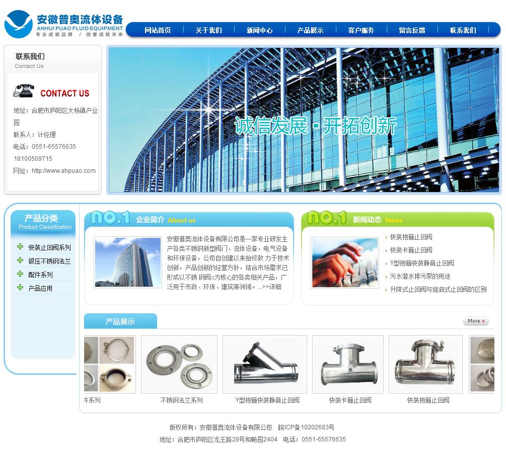 安徽普奧流體設(shè)備有限公司是一家專業(yè)研發(fā)生產(chǎn)各類不銹鋼新 型閥門、流體設(shè)備,電氣設(shè)備和環(huán)保設(shè)備,公司自創(chuàng)建以來始終致 力于技術(shù)創(chuàng)新,產(chǎn)品創(chuàng)新的經(jīng)營(yíng)方針,結(jié)合市場(chǎng)需求已形成以不銹 鋼閥□為核心的各類相關(guān)產(chǎn)品,廣泛用于市政、環(huán)保、建筑等領(lǐng)域。