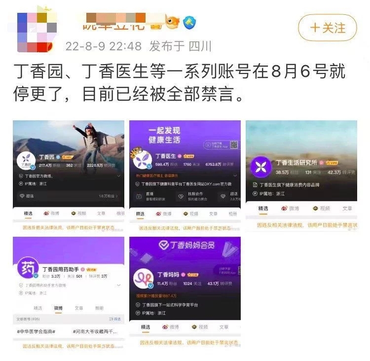 8月10日音訊,針對(duì)丁香園旗下系列微博賬號(hào)被禁言一事,據(jù)齊魯壹點(diǎn)報(bào)導(dǎo),丁香園工作人員回應(yīng)稱(chēng),公司部分社交媒體賬號(hào)因平臺(tái)要求,