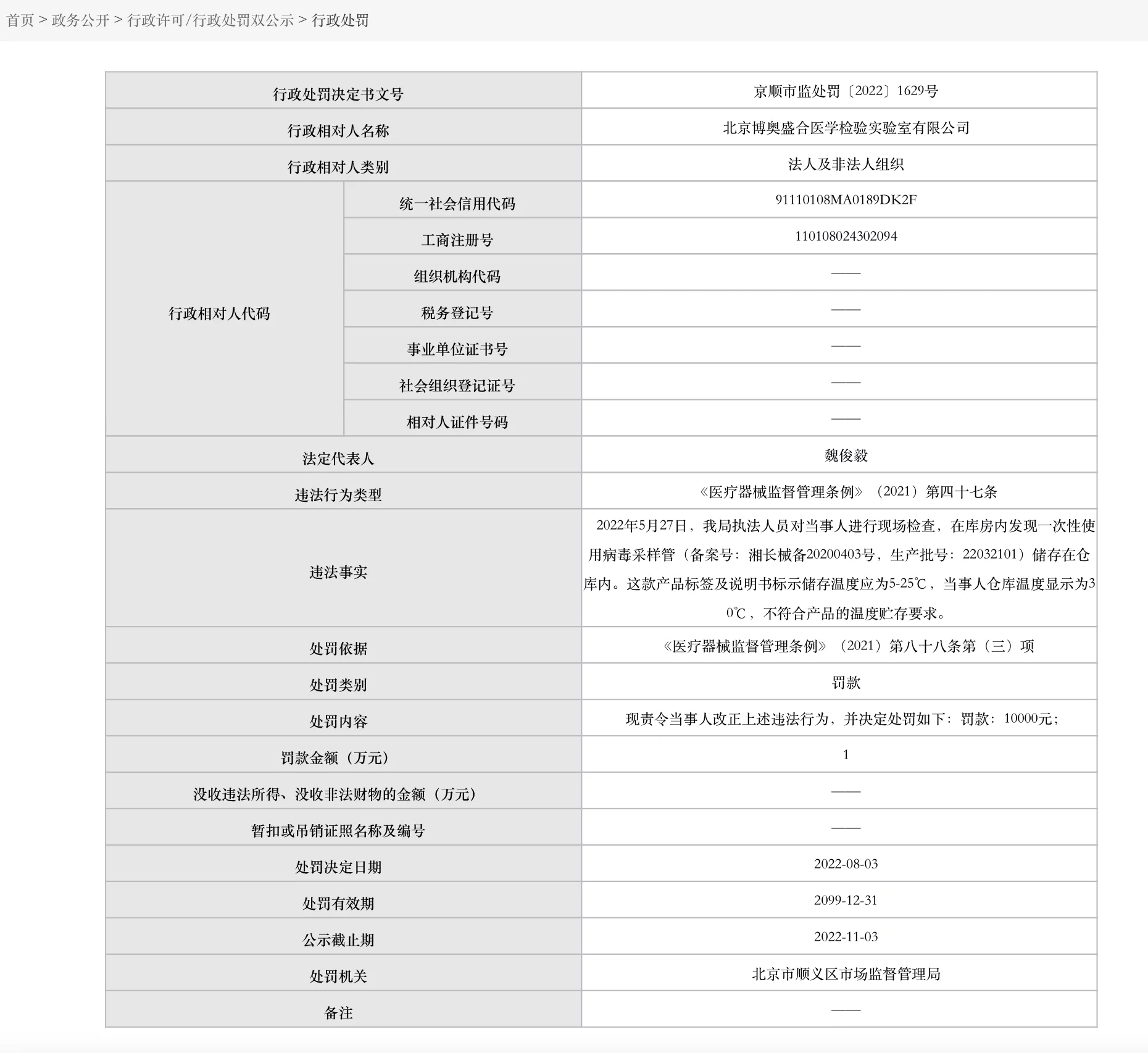 據(jù)北京市監(jiān)局網(wǎng)站音訊,2022年5月27日,北京市順義區(qū)商場(chǎng)監(jiān)督管理局執(zhí)法人員對(duì)北京博奧盛合醫(yī)學(xué)查驗(yàn)實(shí)驗(yàn)室有限公司進(jìn)行現(xiàn)場(chǎng)查看,