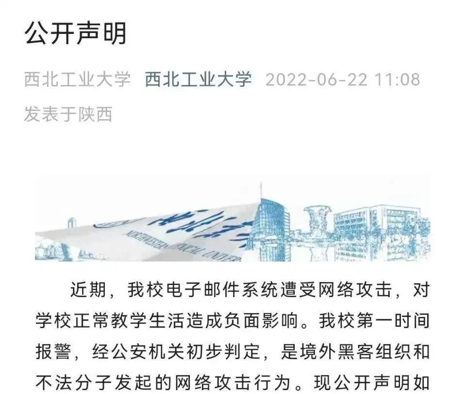 據(jù)央視新聞報(bào)道,9月5日,國(guó)家計(jì)算機(jī)病毒應(yīng)急處理中心和360公司別離發(fā)布了關(guān)于西北工業(yè)大學(xué)遭受境外網(wǎng)絡(luò)進(jìn)犯的查詢(xún)報(bào)告,查詢(xún)發(fā)現(xiàn),