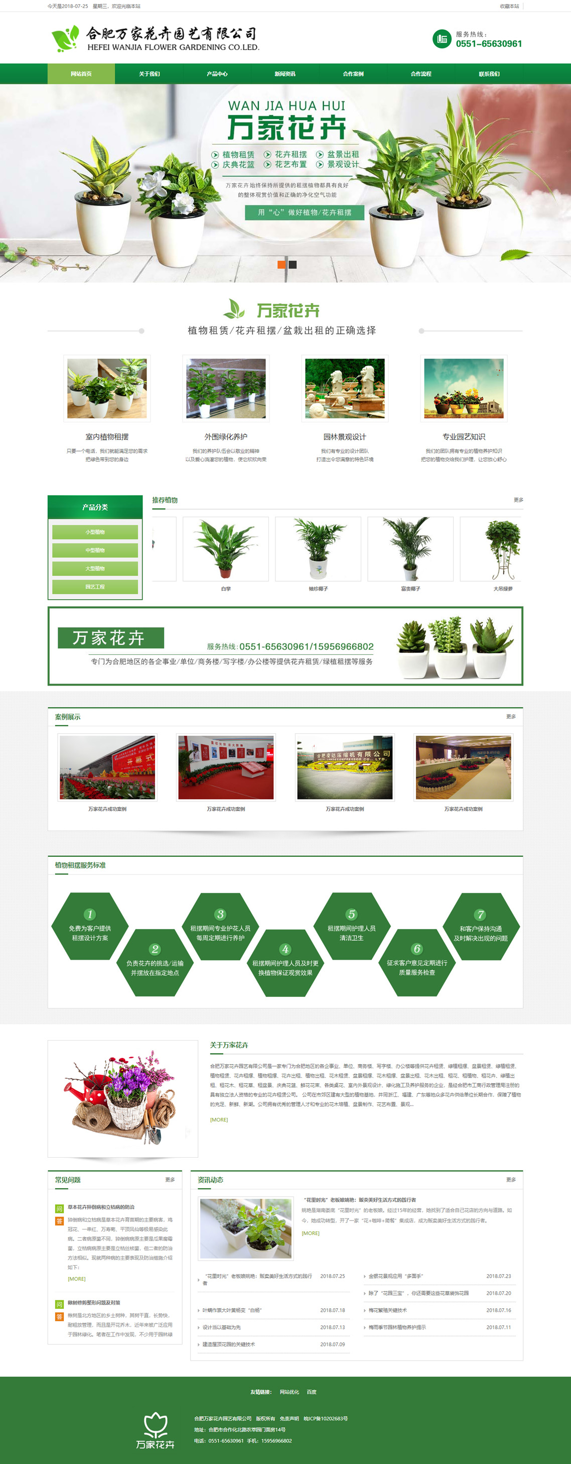 合肥萬家花卉園藝有限公司是一家專門為合肥地區(qū)的各企事業(yè)、單位、商務(wù)樓、寫字樓、辦公樓等提供花卉租賃、綠植租擺、盆景租賃、慶典花籃、鮮花花束、各類桌花、室內(nèi)外景觀設(shè)計(jì)、綠化施工及養(yǎng)護(hù)服務(wù)的企業(yè),是經(jīng)合肥市工商行政管理局注冊的具有獨(dú)立法人資格的專業(yè)的花卉租賃公司。